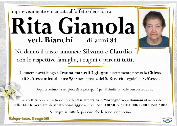 il giorno 9 dicembre 2025 ci ha lasciati Bonazzola Margherita di anni 88