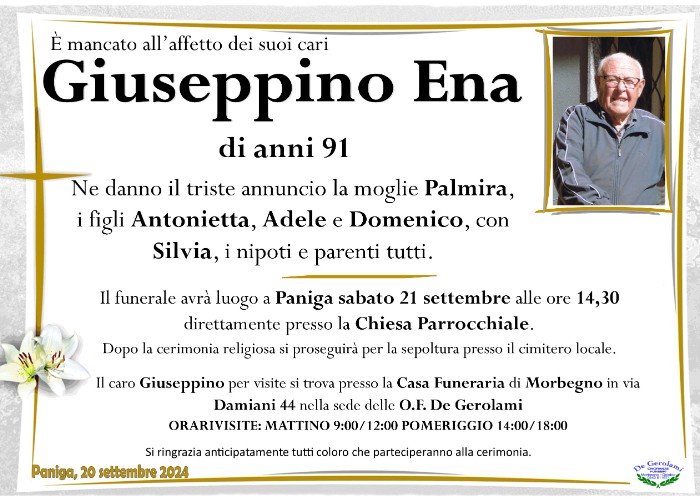 il giorno 19 settembre 2024. ci ha lasciati Ena Giuseppino di anni 91