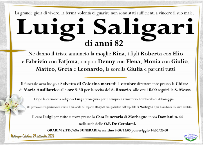 il giorno 29 settembre 2024 ci ha lasciati Luigi Saligari di anni 82