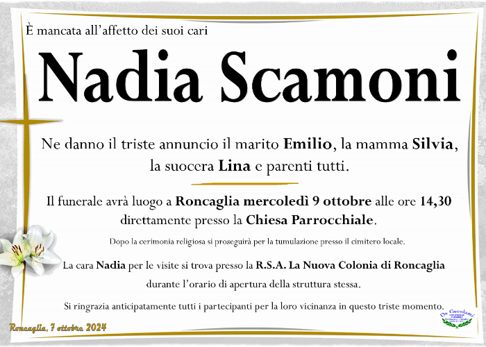 il giorno 6 ottobre 2024 ci ha lasciati Scamoni Nadia